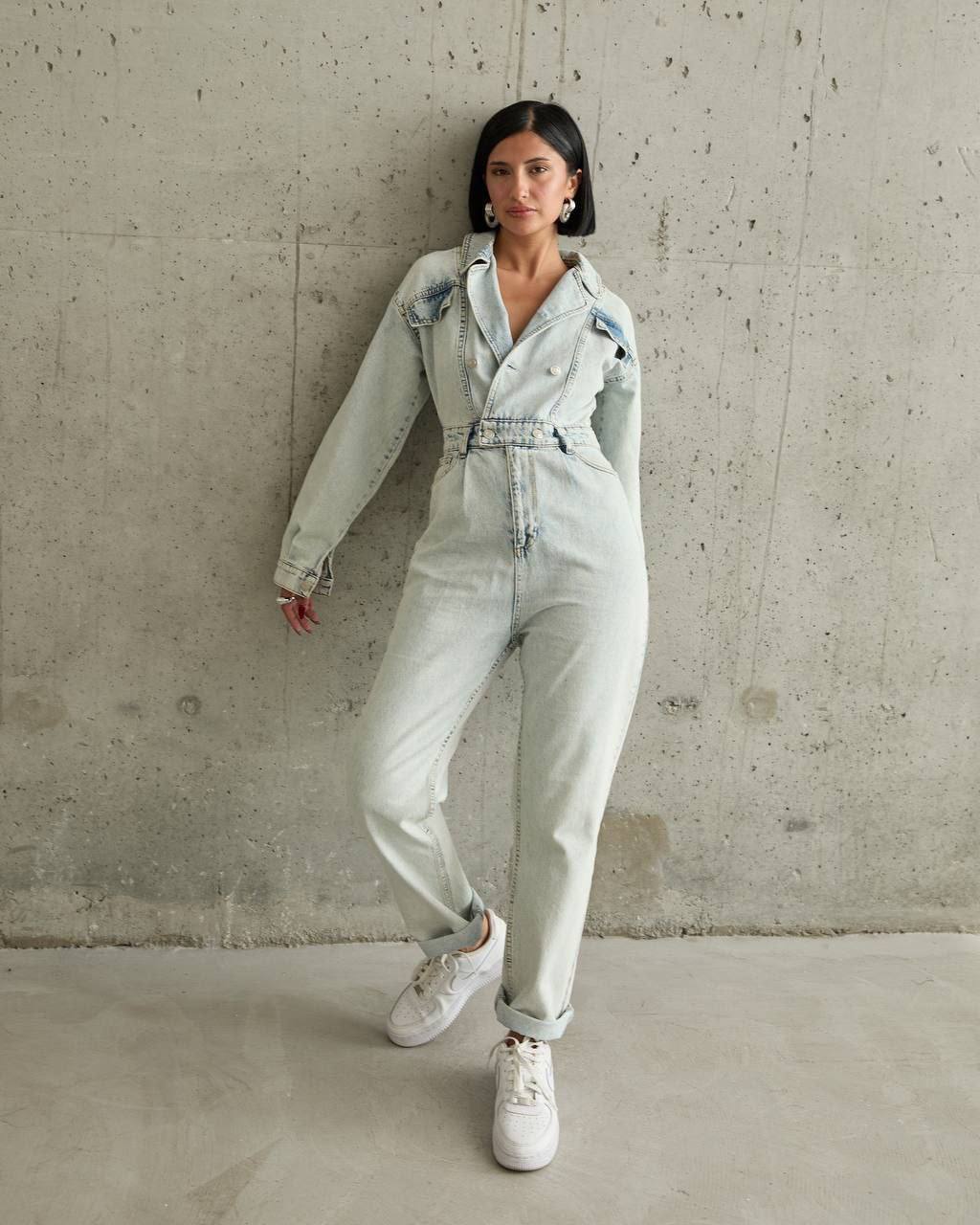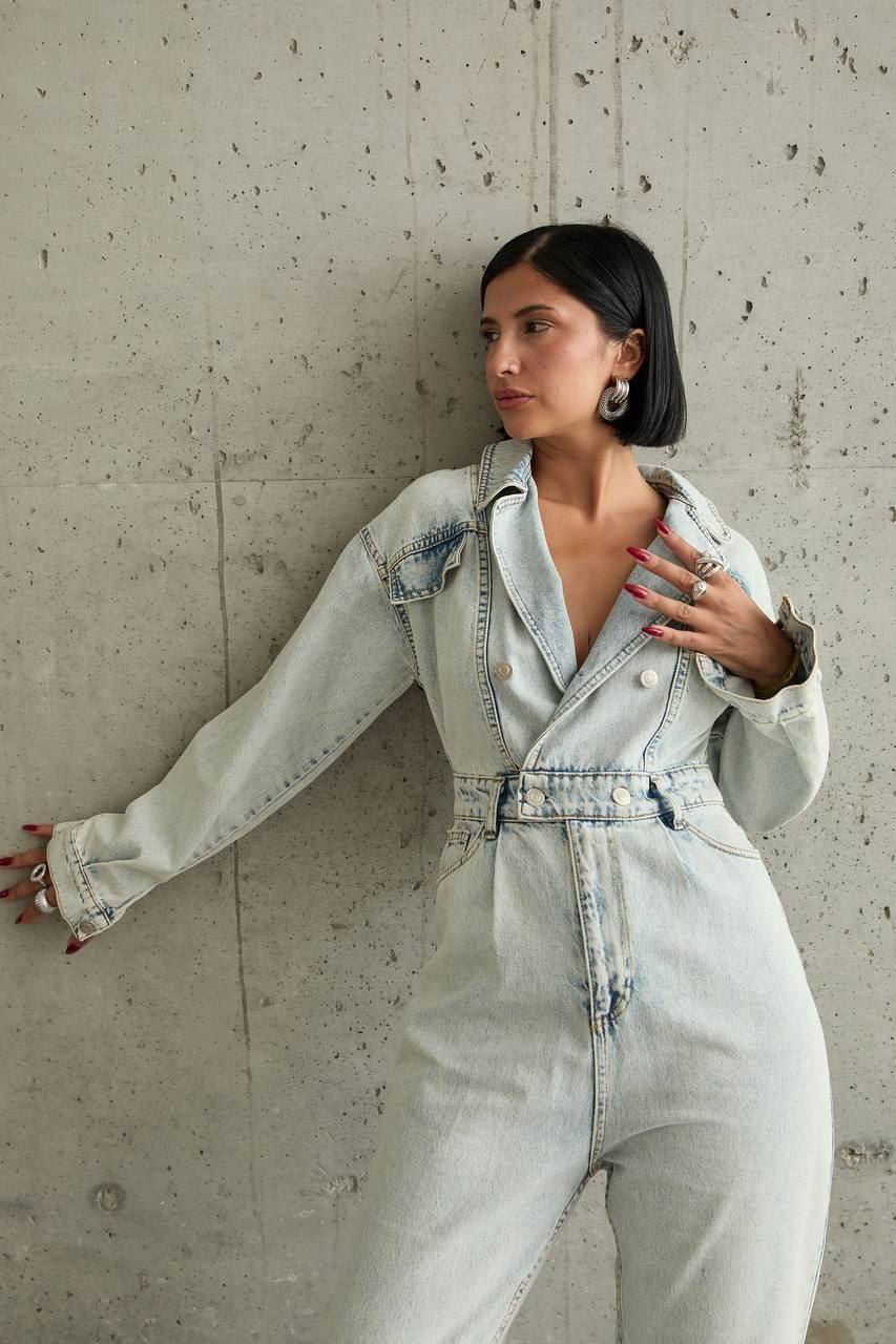 🌍 Günlük stilinize zahmetsiz bir şıklık katmaya hazır mısınız? Özel asit yıkama tekniği ile hazırlanan bu denim tulum, hem retro hem de modern bir duruş sergiliyor. V yaka detayı ve beli vurgulayan kesimi sayesinde vücut hatlarını zarifçe ortaya çıkarırken, yumuşak denim dokusuyla gün boyu konfor sağlar.
