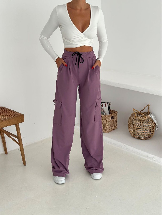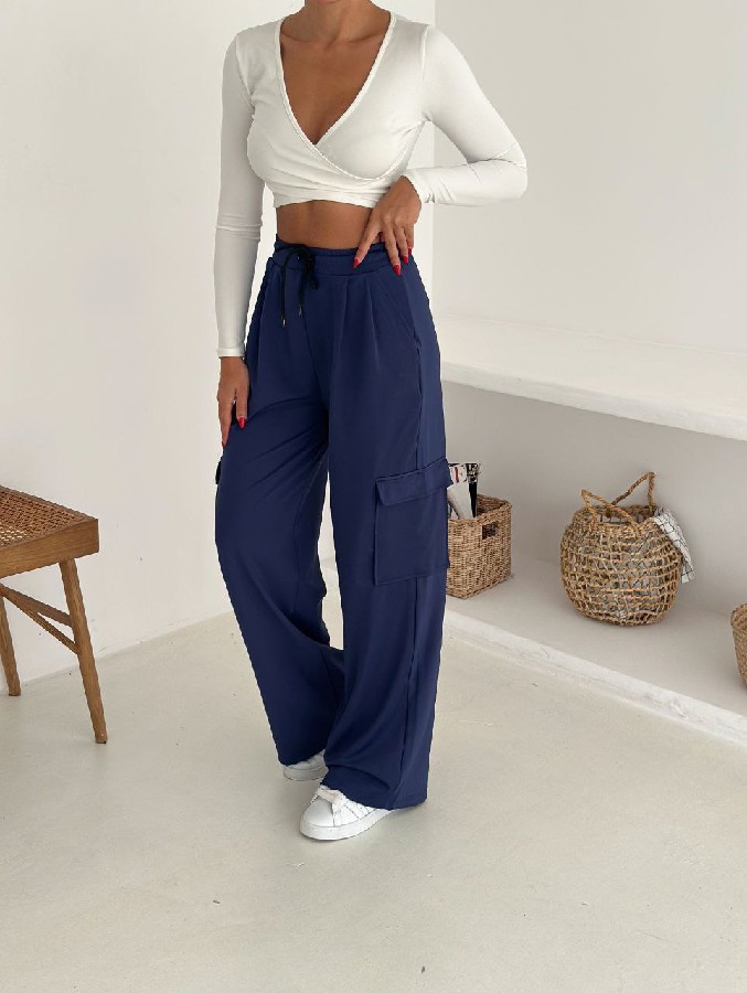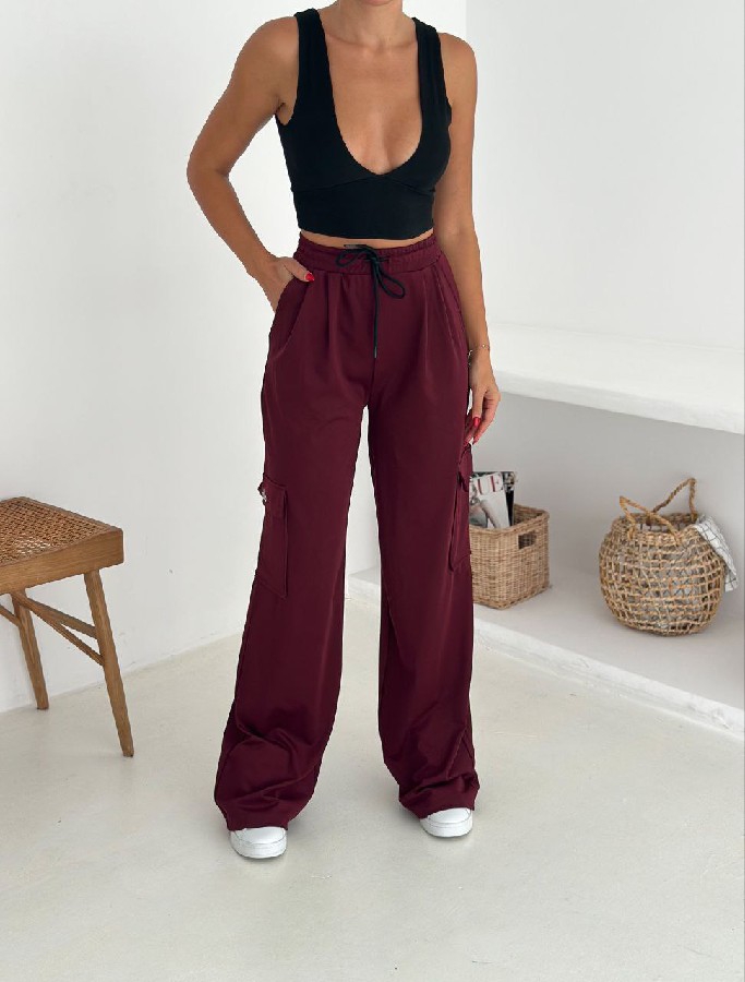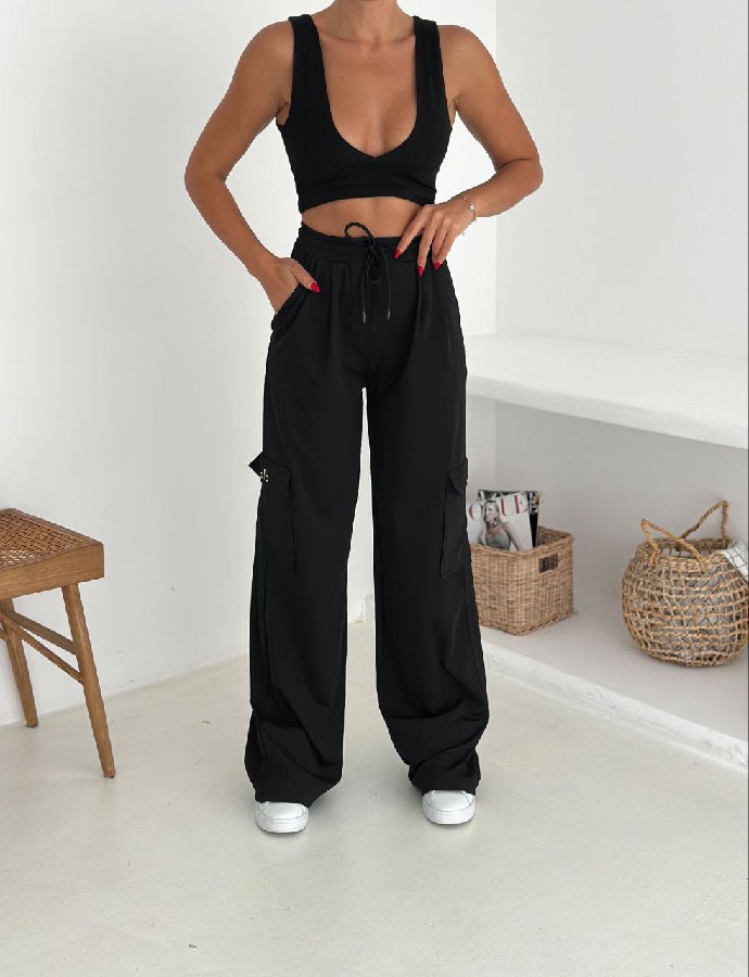 - Tasarım: Modern geniş paça kesimi ve fonksiyonel kargo cepleri ile şık bir silüet sunar.