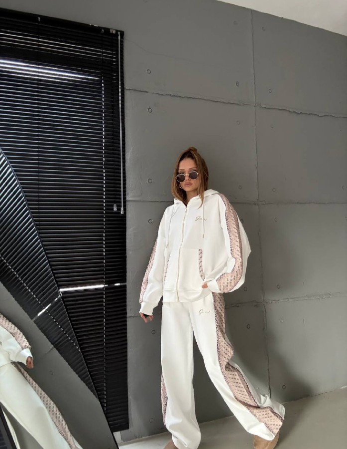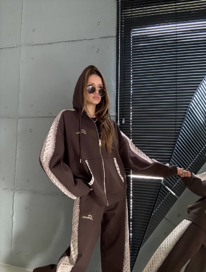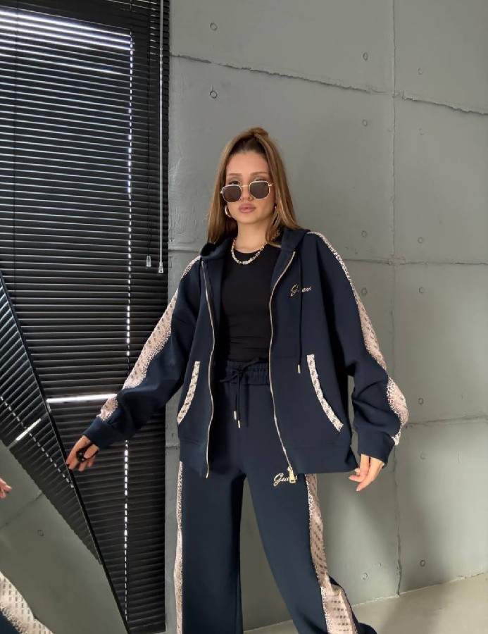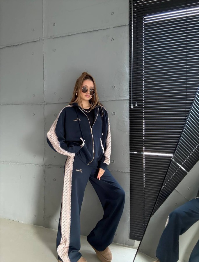 Günlük stilinize lüks bir dokunuş katan bu eşofman takımı, hem ev konforunda hem de dışarıdaki dinamik temponuzda size eşlik etmek için tasarlandı. Yüksek kaliteli kumaşı ve kol/bacak kısımlarında boydan boya uzanan özel desenli şerit detaylarıyla modern bir silüet sunar.