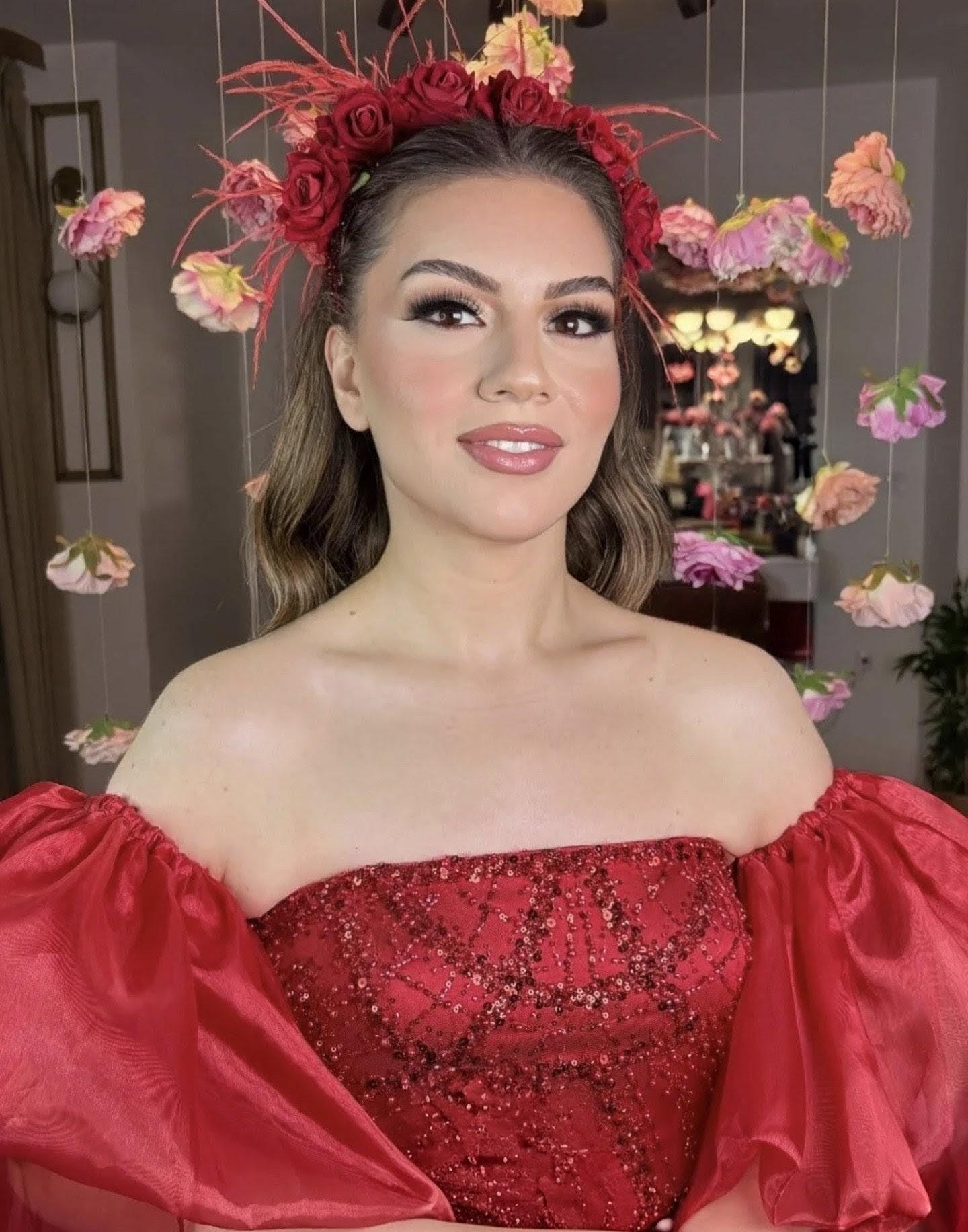 Kına gecelerinin vazgeçilmez tamamlayıcısı olan bu kırmızı güllü kına tacı, zarif ve göz alıcı tasarımıyla gecenize unutulmaz bir dokunuş katıyor. Yoğun kırmızı tonlardaki güller ve modern detaylarla süslenen bu özel taç, gelin adaylarının en özel anlarında şıklığını ön plana çıkarır.
