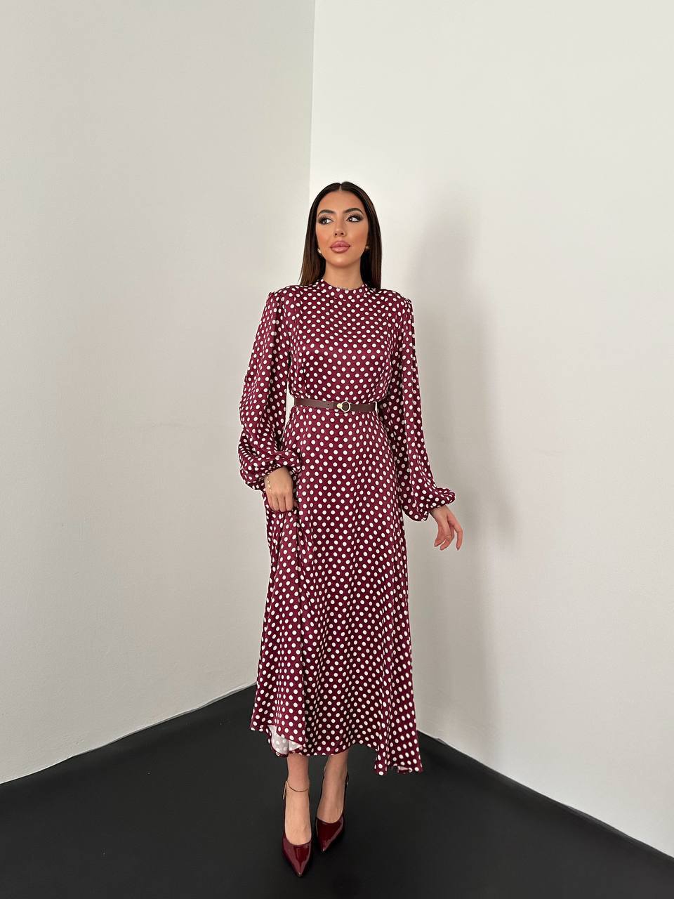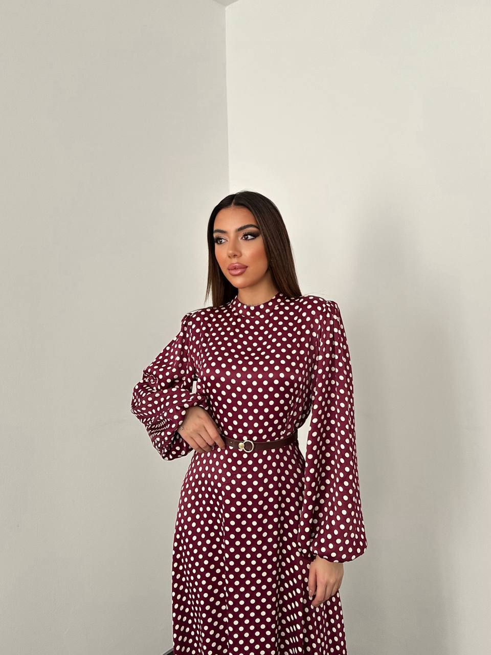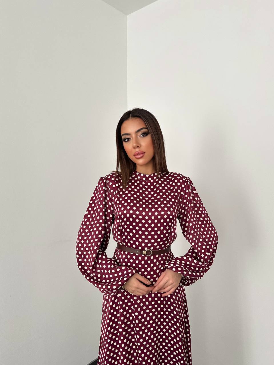Şıklığın ve zarafetin buluştuğu bu puantiyeli saten elbise, gardırobunuzun vazgeçilmez parçalarından biri olmaya aday. Günlük kullanım için ideal olduğu kadar özel davetlerde de dikkat çekici bir tercih olan bu elbise, farklı stillerle kombinlenerek her ortama uyum sağlar.